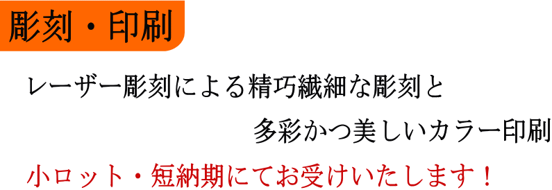 ペンや筆の文字入れ・ロゴ入れ・名入れ、桐箱やアクリルへの彫刻・印刷など、弊社ではさまざまな品へ彫刻・印刷を小ロット・短納期にてお受けしております。